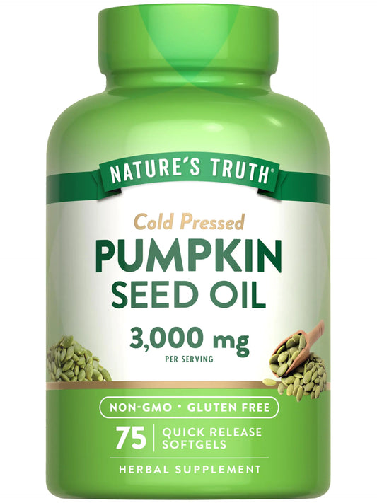 Natures Truth Pumpkin Seed Oil | 3000mg | 75 Softgels | Cold Pressed Herbal Supplement | Non-GMO & Gluten Free Supplement